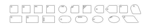 薄膜開關(guān)按鍵的各種形狀:鍵體外形與大小的設(shè)計,應(yīng)從整個面板的大小及按鍵數(shù)量的多少來考慮。按鍵太小,操作比較費(fèi)力;按鍵太大,則影響美觀,且不宜按準(zhǔn)有效操作區(qū)域。另外,如果按鍵凸起,應(yīng)選擇帶圓角的矩形、圓形、橢圓、長圓等外形比較圓滑的形狀;按鍵不凸起時,則可選擇任意形狀,以略大于后部電路觸點(diǎn)為好。在鍵體上設(shè)置指示窗,一般情況下,以左上角為好。指示窗的形狀雖可自由設(shè)計,但應(yīng)注意盡量與鍵體的外形輪廓相適應(yīng),譬如,帶圓角的鍵體,宜采用圓形指示窗,方角鍵體宜采用方形或長方形指示窗,以增進(jìn)外觀的協(xié)調(diào)。在同一面板上各單元內(nèi)的指示窗位置及形狀應(yīng)趨于一致。常見鍵體外形與指示窗位置、形狀見下圖